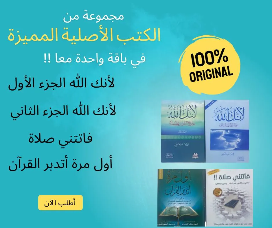 استفد من مجموعة كتب أصلية مميزة ،عمق الإيمان وزيادة المعرفة الدينية مع هذه الباقة الرائعة من الكتب. "لأنك الله" في جزئيه الأول والثاني يقدم لك فهماً عميقاً لأسماء الله الحسنى وتأثيرها في حياتك اليومية. "فاتتني صلاة" يساعدك على التغلب على تحديات الصلاة والعودة إلى الالتزام بها. "أول مرة أتدبر القرآن" يأخذك في رحلة تدبر آيات القرآن الكريم بطريقة مؤثرة وواضحة. هذه الكتب المختارة بعناية ستعزز إيمانك وتزيد من فهمك للدين. لا تفوت الفرصة، احصل على نسختك الأصلية اليوم وابدأ رحلتك نحو المعرفة.