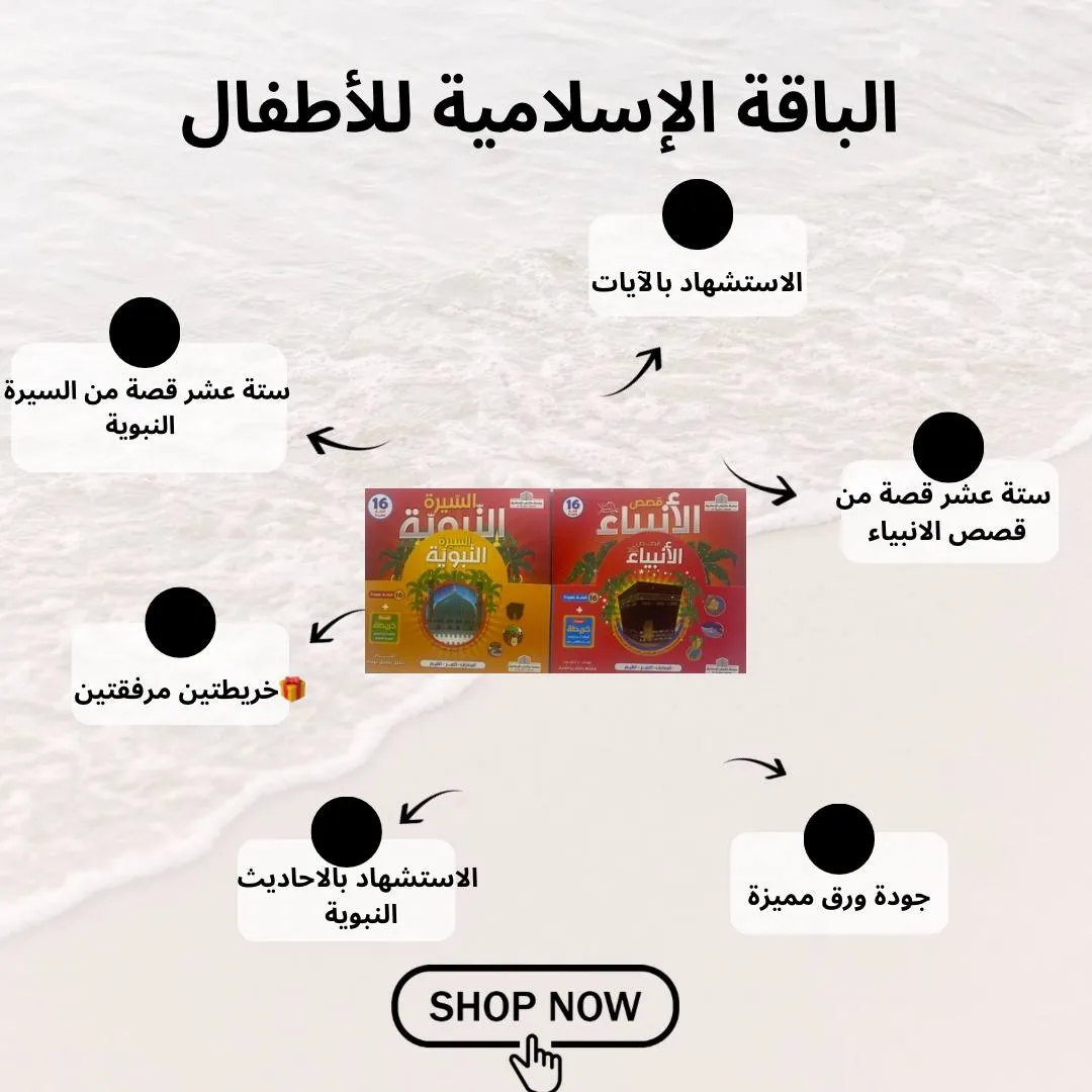عدد الكتب : 16 عدد القصص : 32 (كل كتاب فيه قصتين) +خريطتين نضع بين ايديكم باقة جديدة للاطفال مكونة من 32 قصة دينية باسلوب مميز،خط واضح،بالشكل و الصور المرفقة مع خريطتين توضيحيتين ساهموا في نشأة سليمة لابناءكم ، احصلوا على الباقة الان