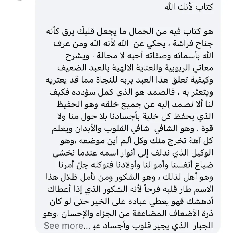 كتابان يقويان علاقتك بالله ويزيدان ثقتك به وبما كتب لك ويبينان مدى عظمة كرم الله تعالى على عباده كما يعلماننا الرضا بمشيئة الله عز وجل كتابان قد يكونان نقطة تحول في حياتنا الكتاب متوفر بجزئيه الأول و الثاني ، احصلوا على نسختكم اليوم ، التوصيل متوفر لجميع الولايات