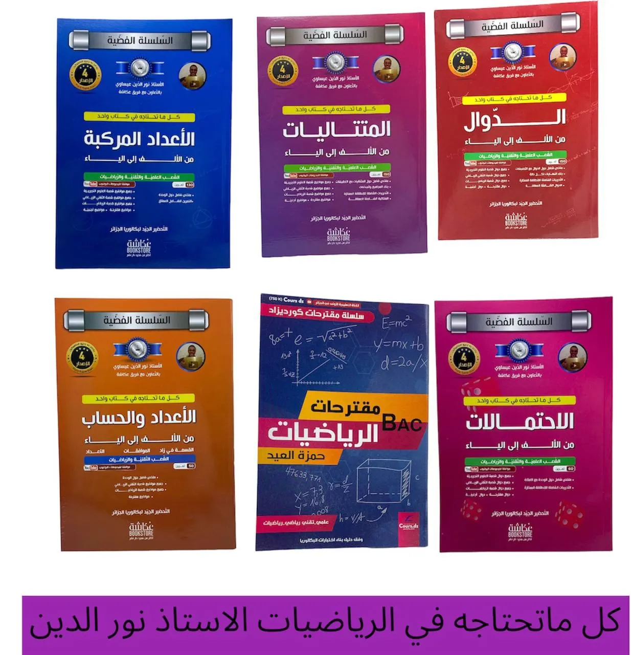 استعد للتميز في امتحانات البكالوريا 2024 مع مجموعة كتب الرياضيات من الاستاذ الرائد نور الدين! تم تصميم هذه المجموعة الفريدة بعناية لتوفير التحضير المثالي لطلاب البكالوريا للنجاح في مادة الرياضيات. تتضمن مجموعة الكتب: - شروحات مفصلة للمفاهيم والمسائل الرياضية المعقدة. - تمارين واسئلة تطبيقية متنوعة لاختبار فهم الطلاب وتطبيق المفاهيم. -بكالوريات سابقة+تمارين مقترحة+مواضيع اجنبية - معلومات محدثة ومتقدمة تلبي احتياجات الطلاب وتؤهلهم لمواجهة تحديات الامتحان. احصل على مجموعة الكتب الرائدة من الاستاذ نور الدين الآن واقترب من النجاح في امتحانات البكالوريا 2024!